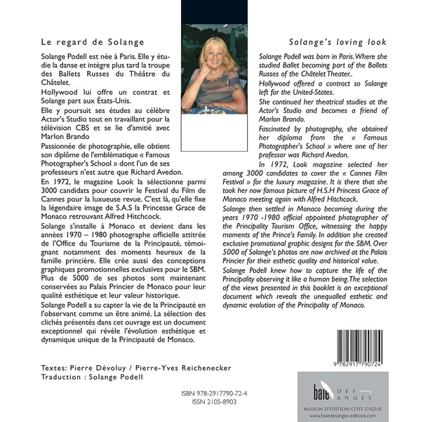Solange Podell a su capter la vie de la Principauté en l'observant comme un être animé. La sélection des clichés présentés dans cet ouvrage est un document exceptionnel qui révèle l'évolution esthétique et dynamique unique de la Principauté de Monaco.