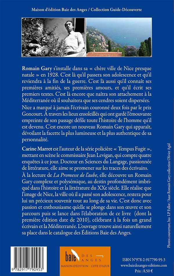 À la lecture de La Promesse de l'aube, elle découvre un Romain Gary complexe et polysémique, au destin profondément imbriqué dans l'histoire et la littérature du XXe siècle. Elle réalise que l'image de Nice, la ville où il a passé son adolescence, restera pour lui un précieux souvenir tout au long de sa vie. C'est donc avec passion et enthousiasme qu'elle se plonge dans son œuvre et son parcours puis se lance dans l'élaboration de ce livre (dont la première édition date de 2010), célébrant à la fois un grand écrivain et la Méditerranée. L'ouvrage trouve ainsi naturellement sa place dans le catalogue des Éditions Baie des Anges.