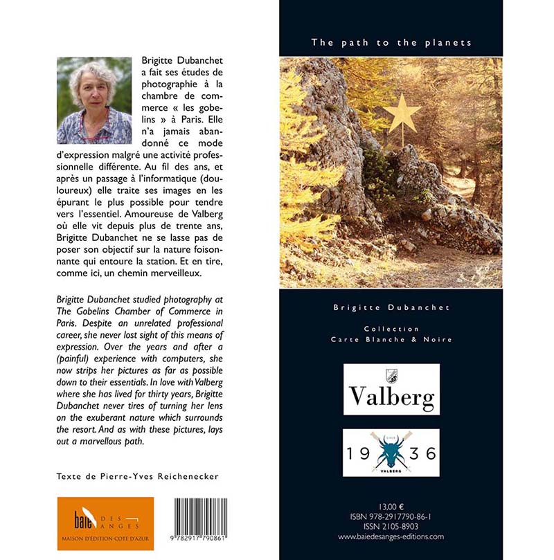 La photographe : Brigitte Dubanchet a fait ses études de photographie à la chambre de commerce « les gobelins » à Paris. Elle n’a jamais abandonné ce mode d’expression malgré une activité professionnelle différente. Au fil des ans, et après un passage à l’informatique (douloureux) elle traite ses images en les épurant le plus possible pour tendre vers l’essentiel. Amoureuse de Valberg où elle vit depuis plus de trente ans, Brigitte Dubanchet ne se lasse pas de poser son objectif sur la nature foisonnante qui entoure la station. Et en tire, comme ici, un chemin merveilleux.